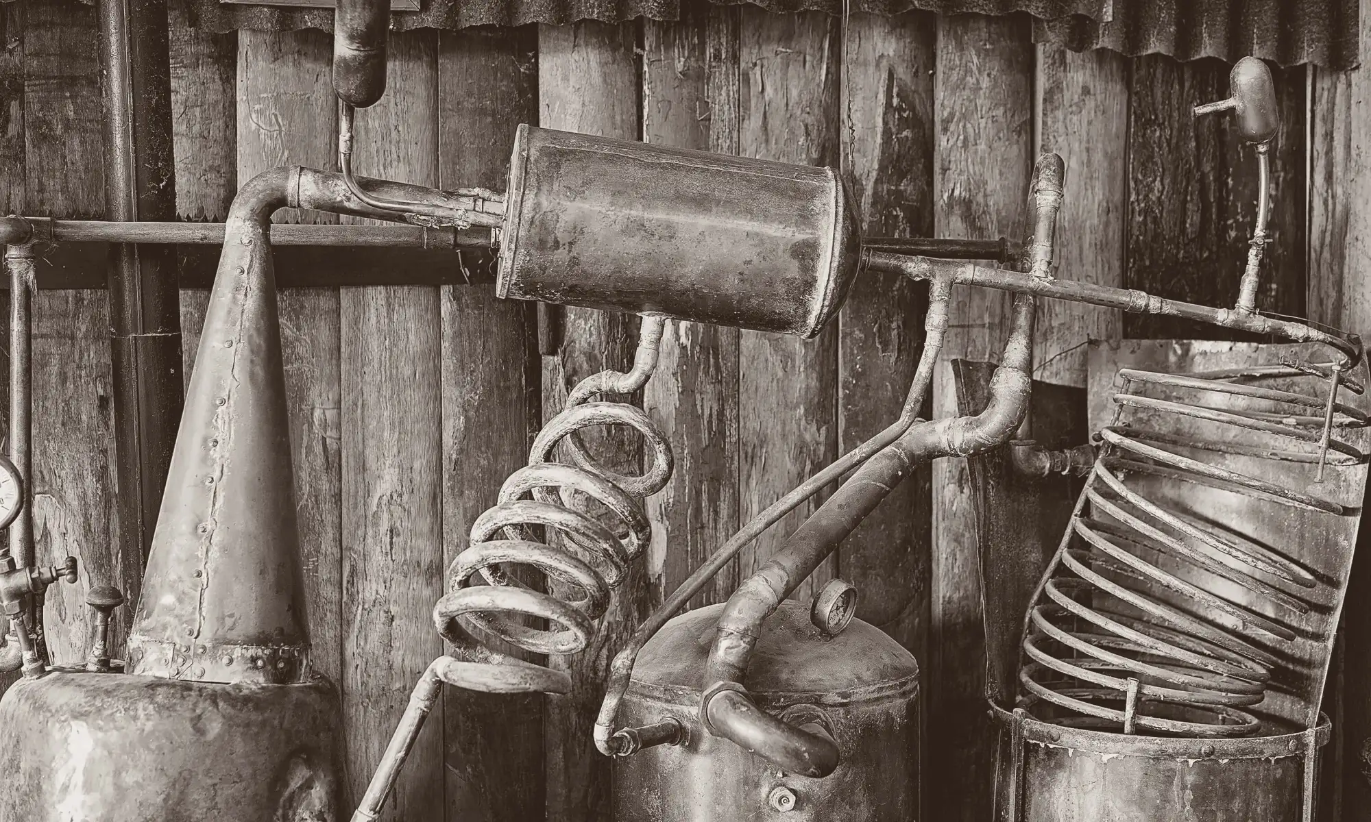 6. that coiled metal pipe on a still, used for distilling alcohol. ↩