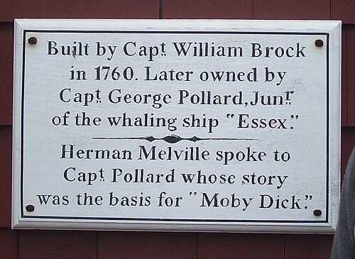 First: In the year 1820 the ship Essex,13 Captain Pollard, of Nantucket, was cruising in the Pacific Ocean. One day she saw spouts, lowered her boats, and gave chase to a shoal of sperm whales. Ere long, several of the whales were wounded; when, suddenly, a very large whale escaping from the boats, issued from the shoal, and bore directly down upon the ship. Dashing his forehead against her hull, he so stove her in, that in less than “ten minutes” she settled down and fell over. Not a surviving plank of her has been seen since. After the severest exposure, part of the crew reached the land in their boats. Being returned home at last, Captain Pollard once more sailed for the Pacific in command of another ship, but the gods shipwrecked him again upon unknown rocks and breakers; for the second time his ship was utterly lost, and forthwith forswearing the sea, he has never tempted it since. At this day Captain Pollard is a resident of Nantucket. I have seen Owen Chace, who was chief mate of the Essex at the time of the tragedy; I have read his plain and faithful narrative;14 I have conversed with his son; and all this within a few miles of the scene of15 the16 catastrophe.17